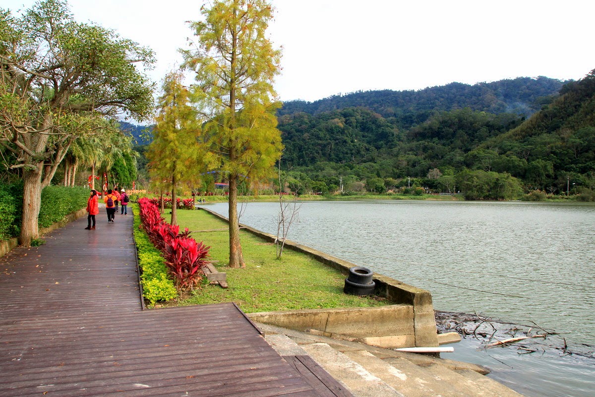 接下來我們轉到永春宮及明湖蘇堤,這裡的風光質感的確有大陸西湖的fu,山色映照於水面上,且不時有白鷺絲飛翔,再加上湖邊步道的設置,來到這裡保證有心曠神怡的舒暢感!!若行走於水泥步道上,兩邊剛好是潭水,若是在晚上月色的烘櫬下,將可看到極為難見的雙潭映月之景,可惜我們是白天才來!!