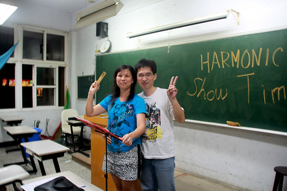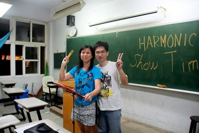 經過惠美姐與蘇爺爺的幫助,我們順利租到頭份國民黨部地下室的空間,等於是無接縫的延續原有的課程,而且老師還特地加碼十孔的課程!!不過由於我們在8/25要上獅頭山作休閒演出,所以今天老師特地搬了音響過來實際操作一番,希望屆時不要漏氣了!!