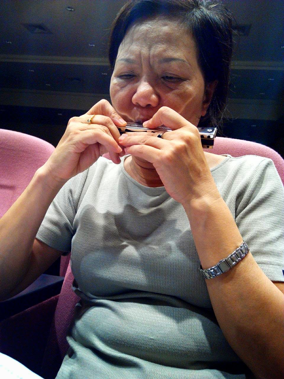 後來老師慢慢地解釋,比賽其實也是"休閒口琴"的一個過程,雖不見得是目標,但可以是選項,之所以會名之為"休閒口琴",有很大的意義是想讓社大的伙伴們能在一個沒有壓力的環境下自由play,但事實上,我們的進步是需要靠點壓力才能促成,純靠隨興與無壓無感的狀態下,有時可能會退步,包括演出,包括邀演,我們為了提供優質的演出,不也是有壓力伴隨嗎?